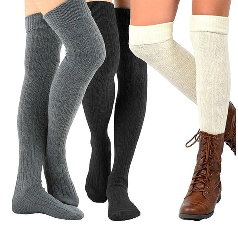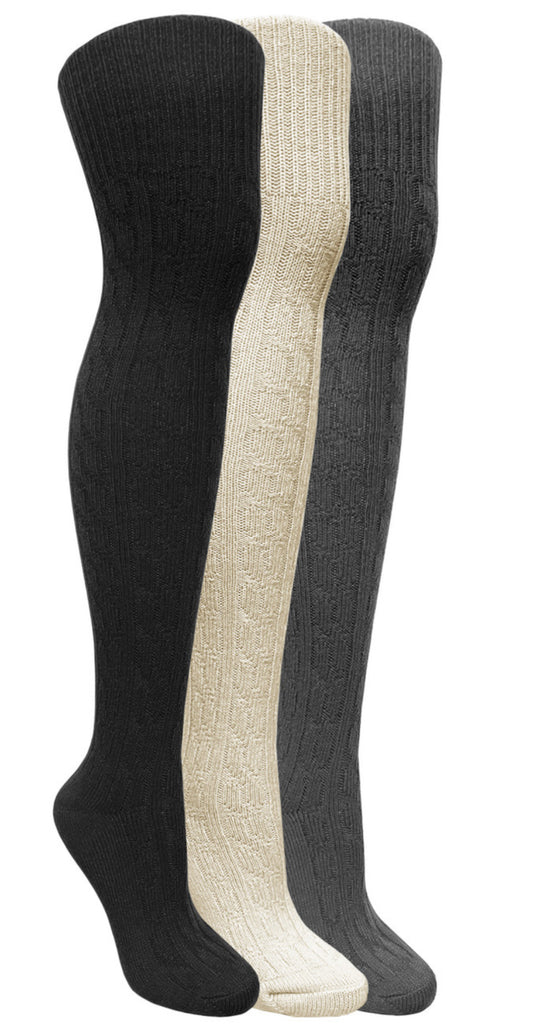 1pr. Cable Knit Over-The-Knee (Black, Grey, Cream, C. Grey)