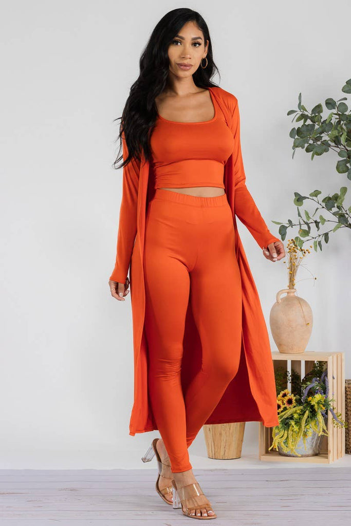 H&H Fashion Inc. - HH624R1-SOLID - 3 PC Pant & Duster Set : Orange / S