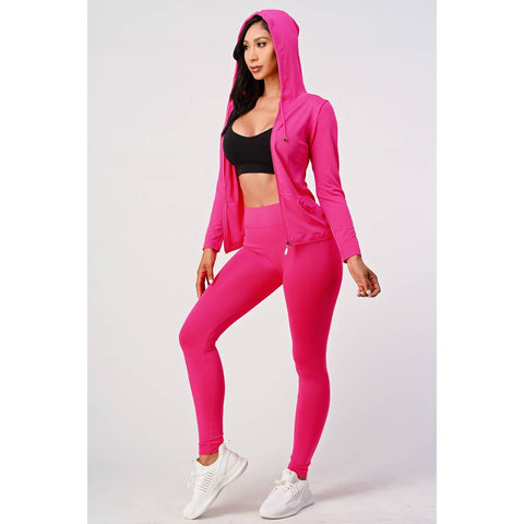 JHP Collection - FALL LONG SLEEVE ZIPUP HOODIE JACKET AND LEGGINGS SET: FUCHSIA / ONE(6)