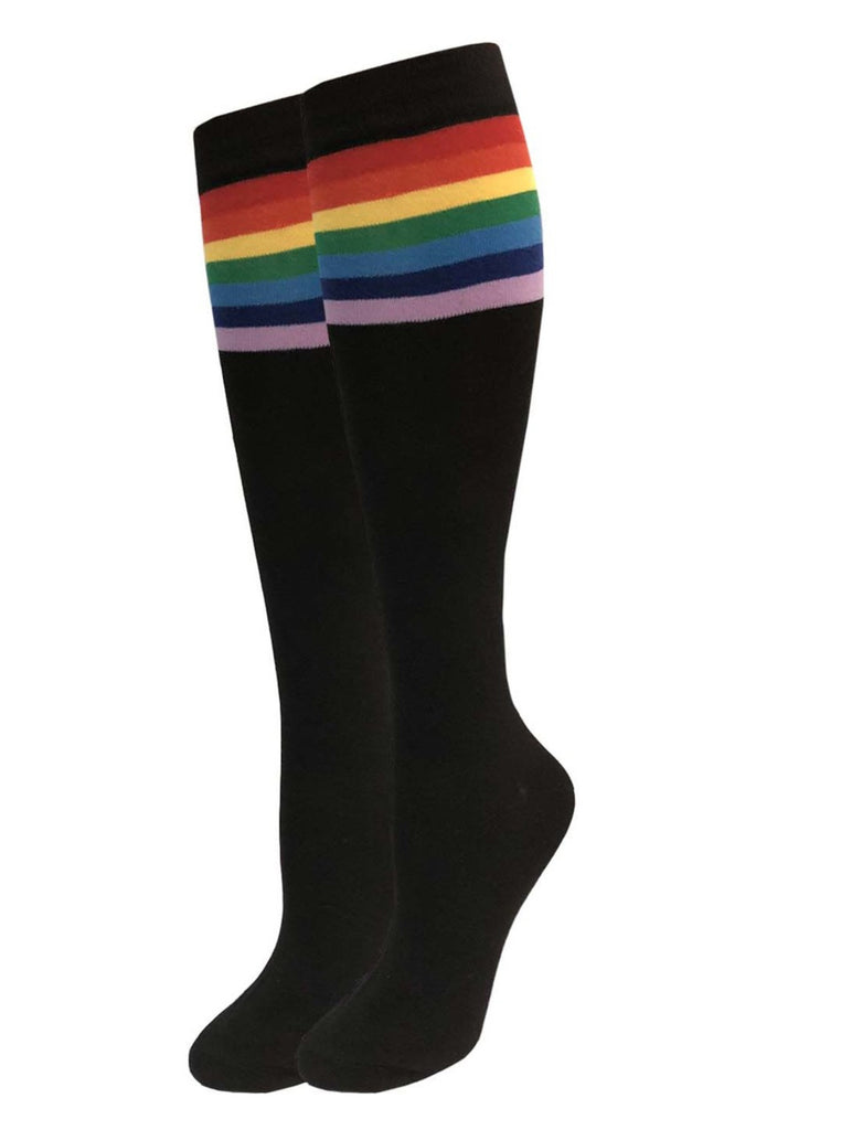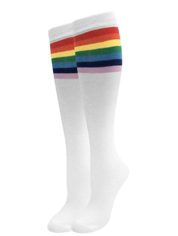 1pr. Julietta Knee-High Socks - Rainbow Stripes Size 9-11