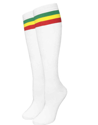 1pr. Julietta Knee-High Socks - Rasta White Size 9-11