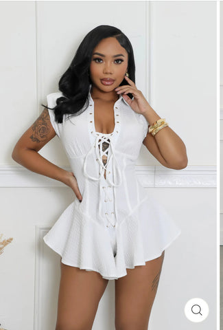 The image features a woman wearing a stylish pink dress with a fitted bodice and flared skirt. The dress has a collared neckline and front lacing detail, adding a fashionable touch. The overall aesthetic is chic and modern, with a soft, vibrant color palette.