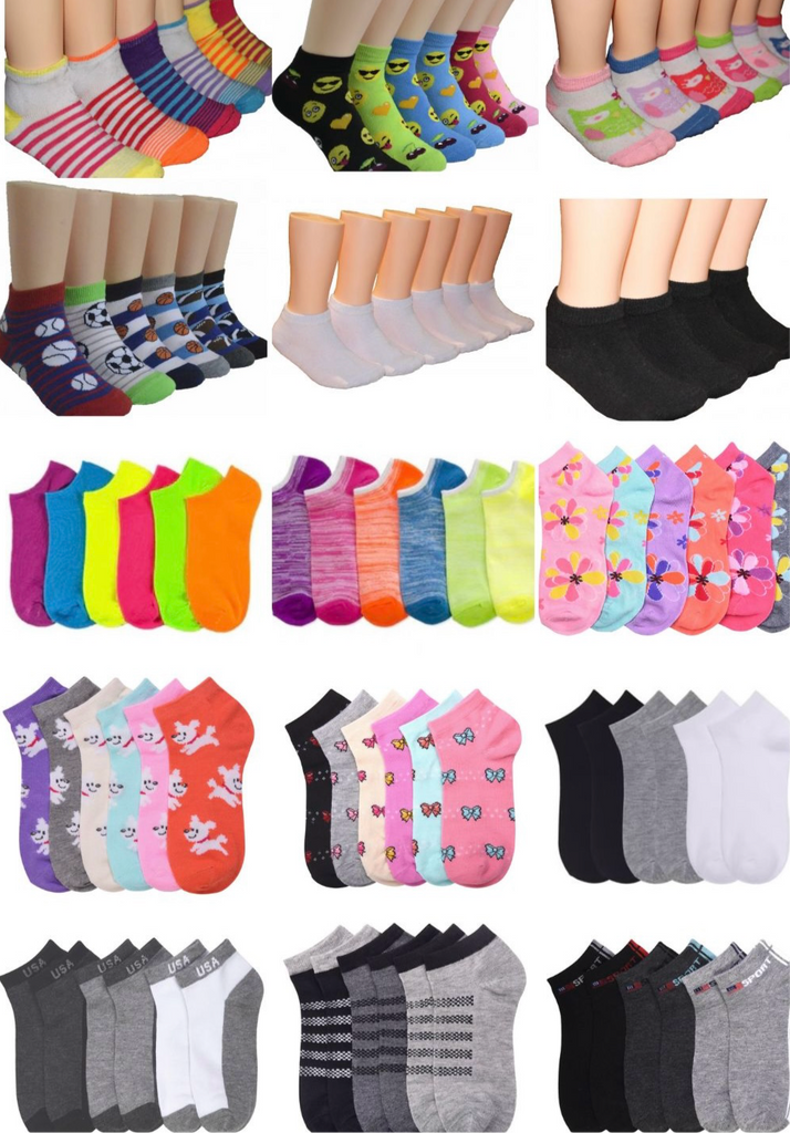 30pr for $15.00 of vibrant, eye-catching, and uniquely designed low-cut socks