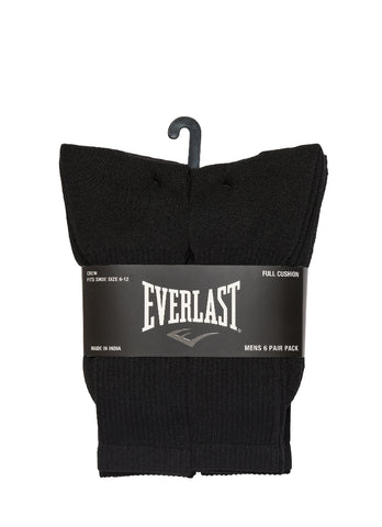 6pk. Everlast Men’s Socks Black Athletic Full Cushion Socks Size 10-13