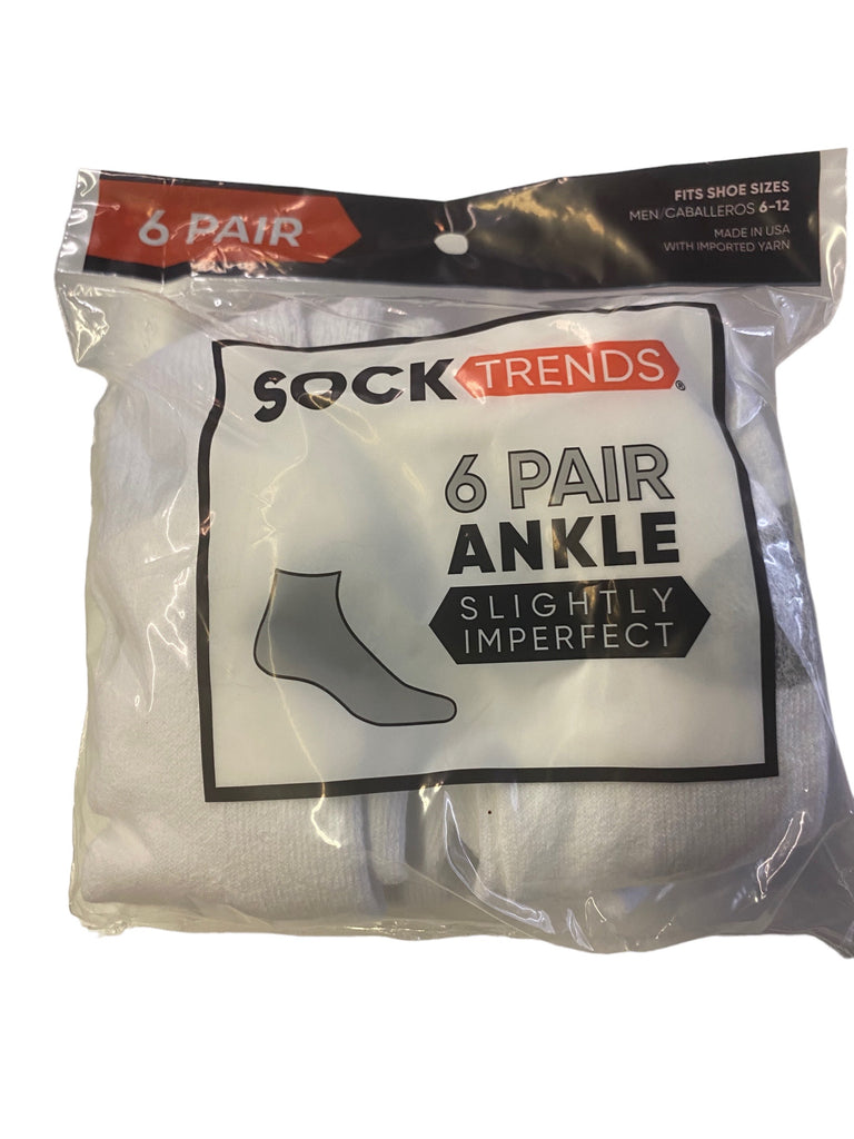 6pk. Sock Trend Men’s Quarter Ankle Socks White/Grey 10-13