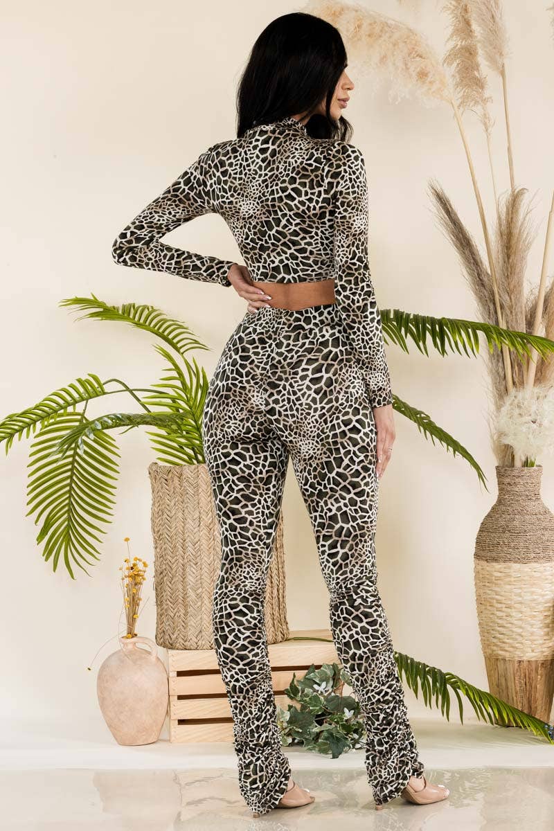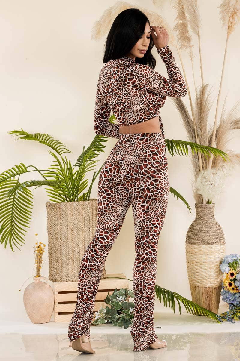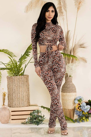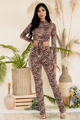 H&H Fashion Inc. - AST-10810 - 2PC Leopard Print Top & Pant Set: RUST / M