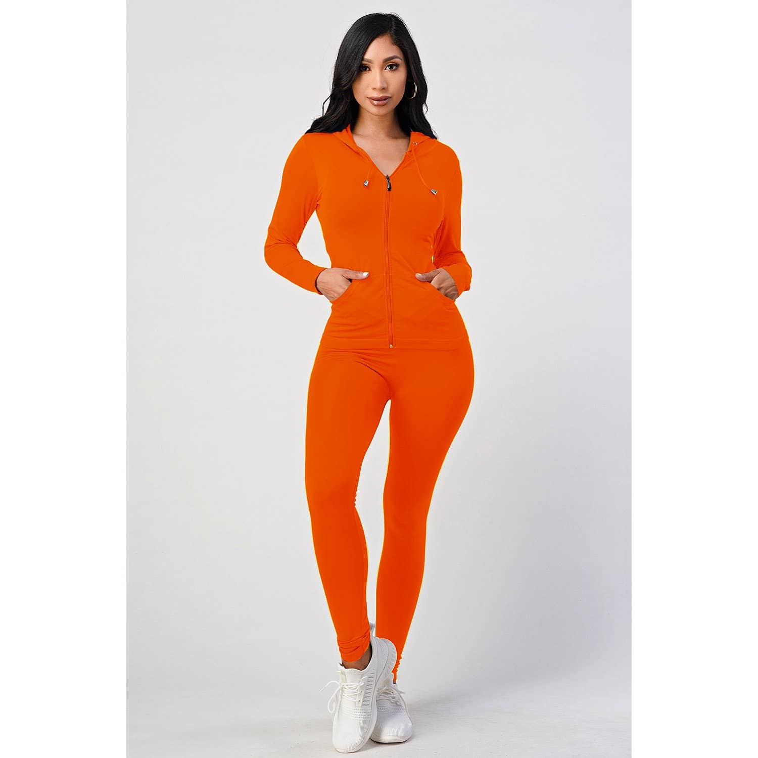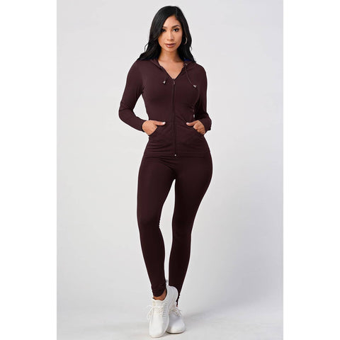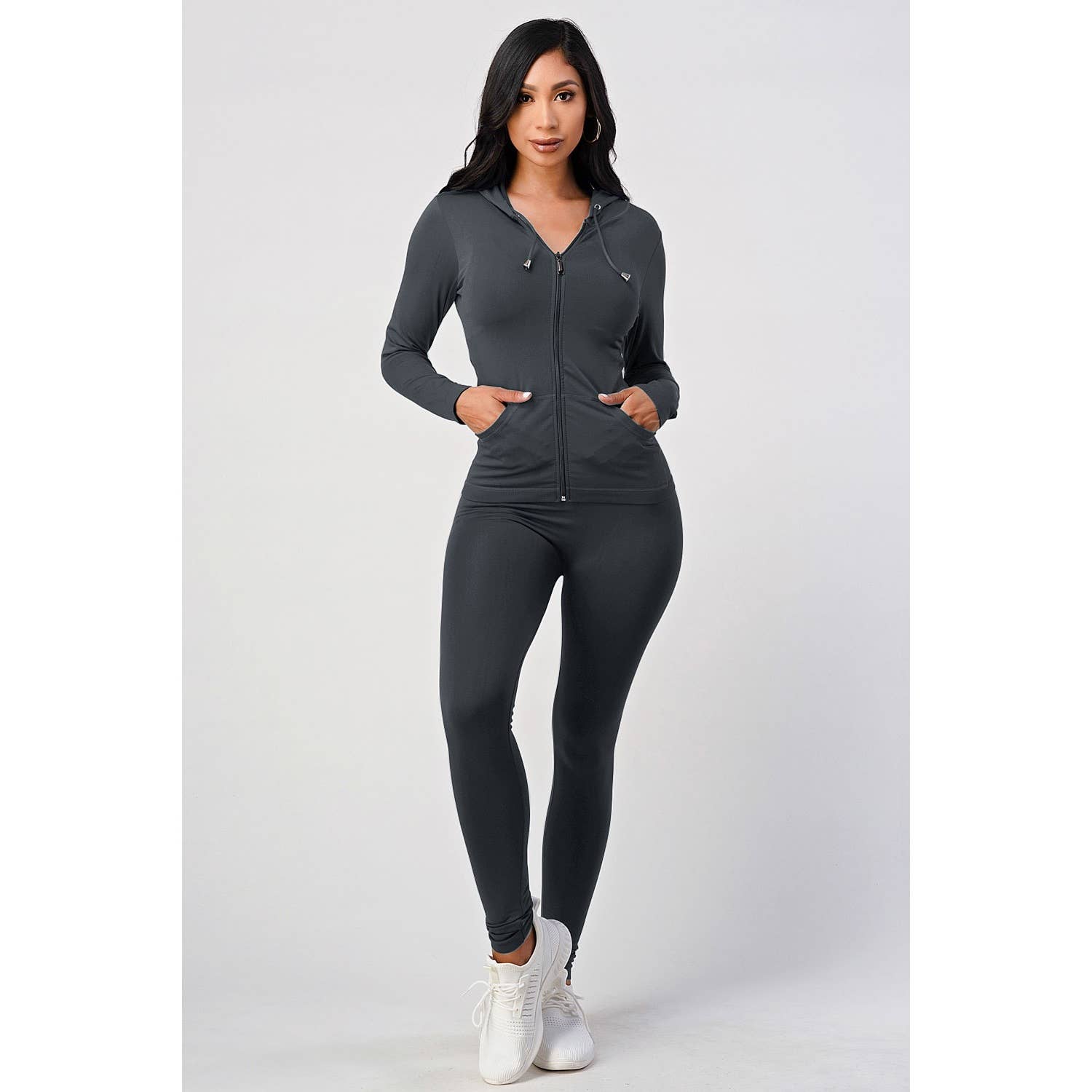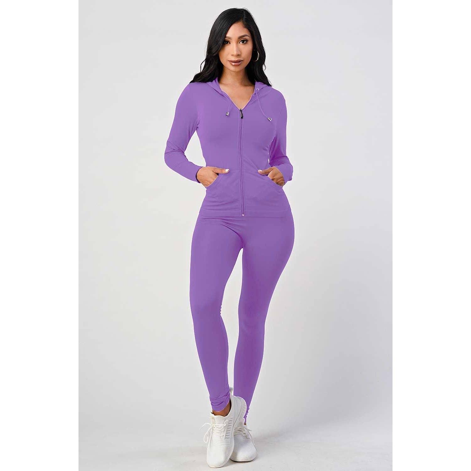 FALL LONG SLEEVE ZIPUP HOODIE JACKET AND LEGGINGS SET MATERIAL: SEAMLESS 92% POLYESTER 8% SPANDEX