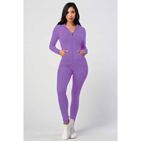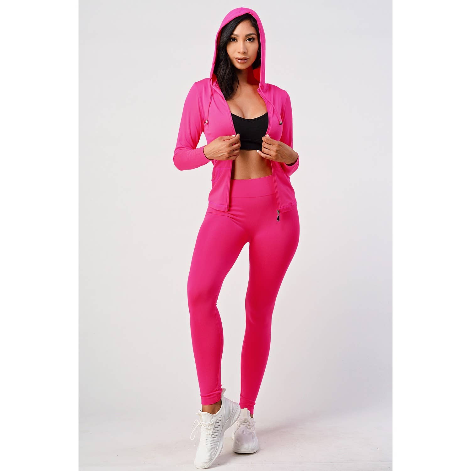 JHP Collection - FALL LONG SLEEVE ZIPUP HOODIE JACKET AND LEGGINGS SET: FUCHSIA / ONE(6)