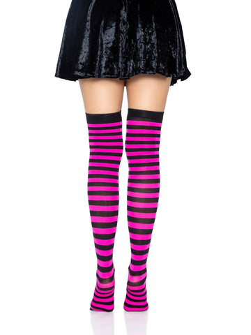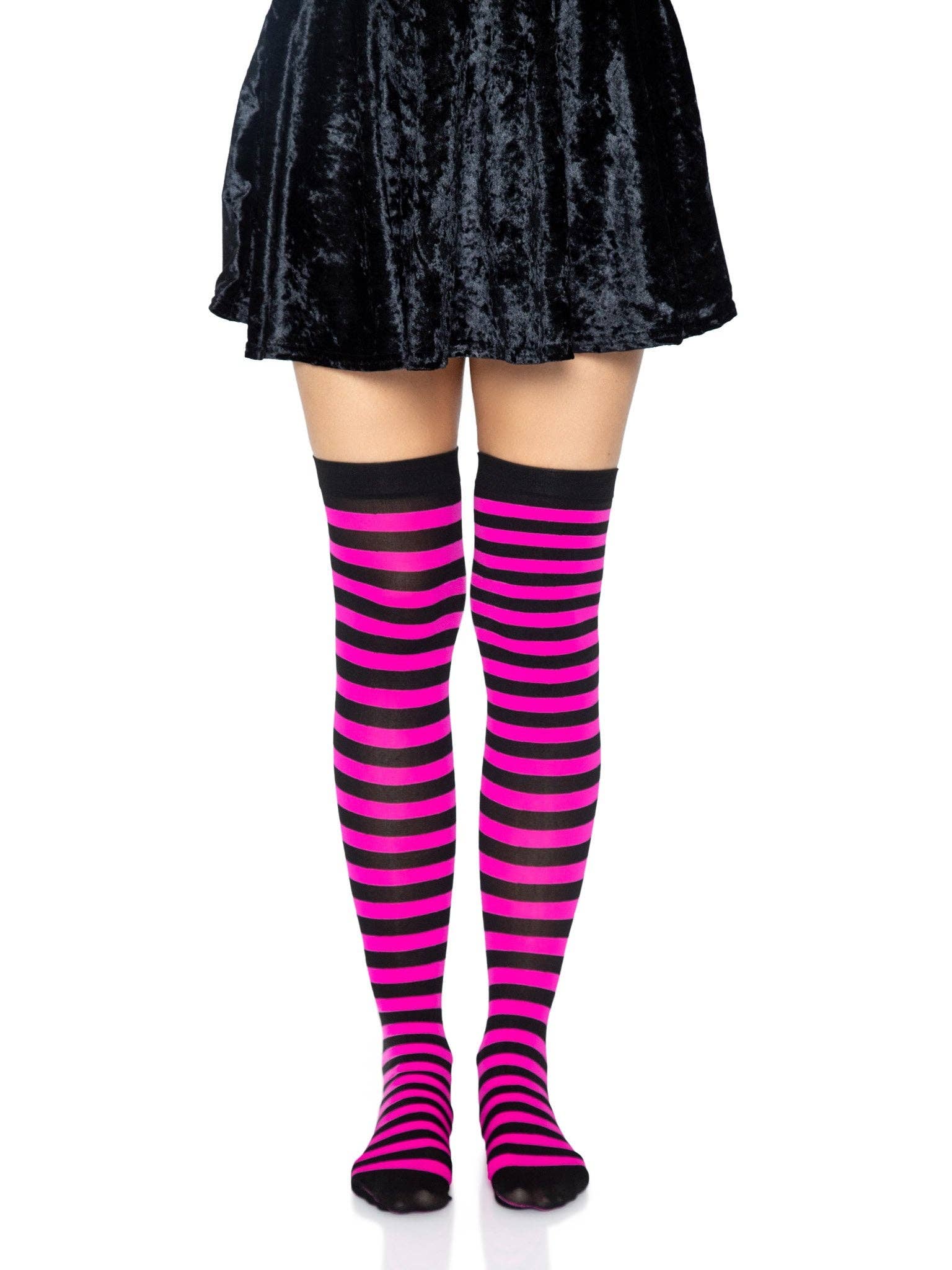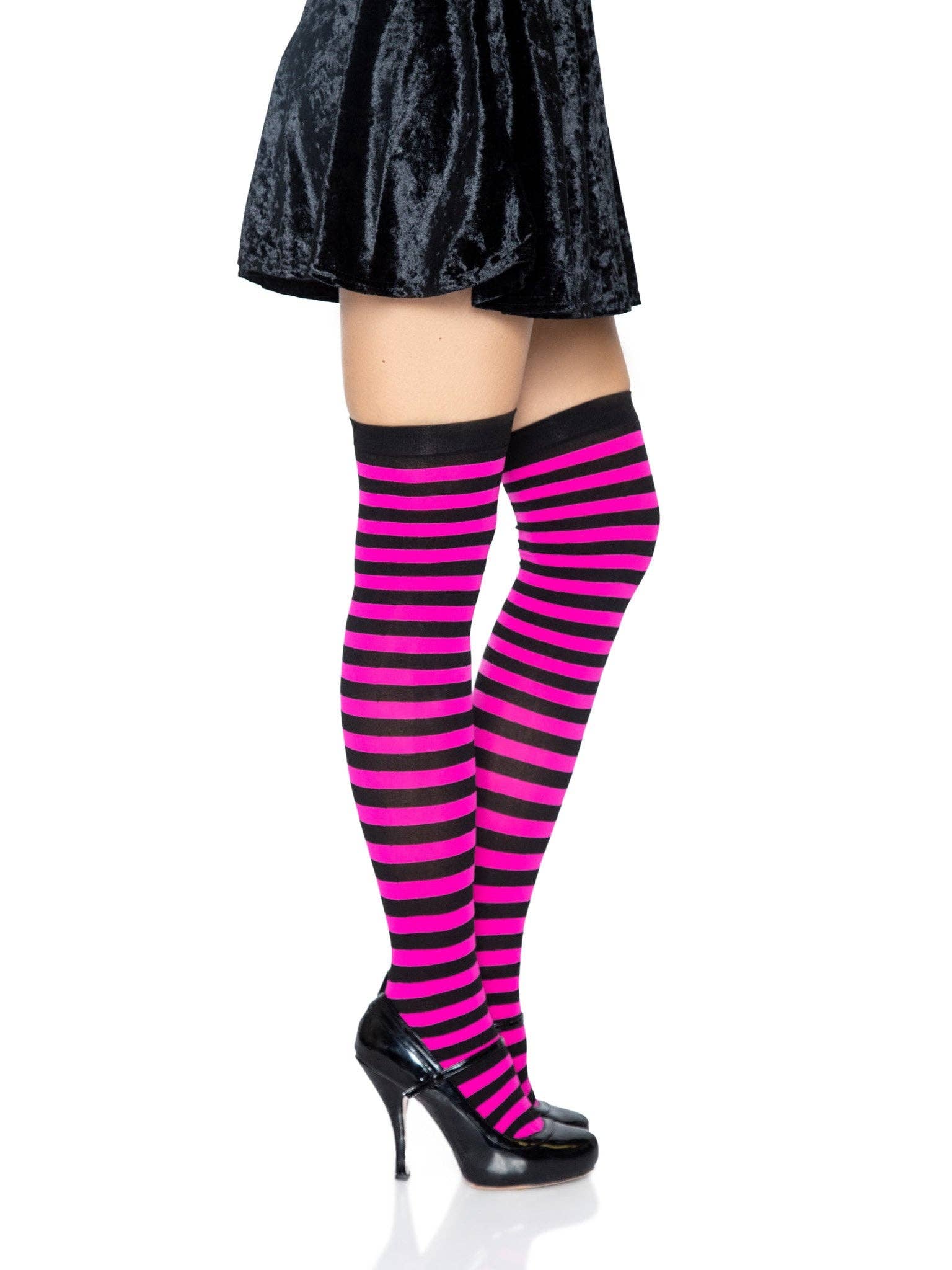 Leg Avenue - Cari Striped Stockings: Black/Neon Pink / One Size