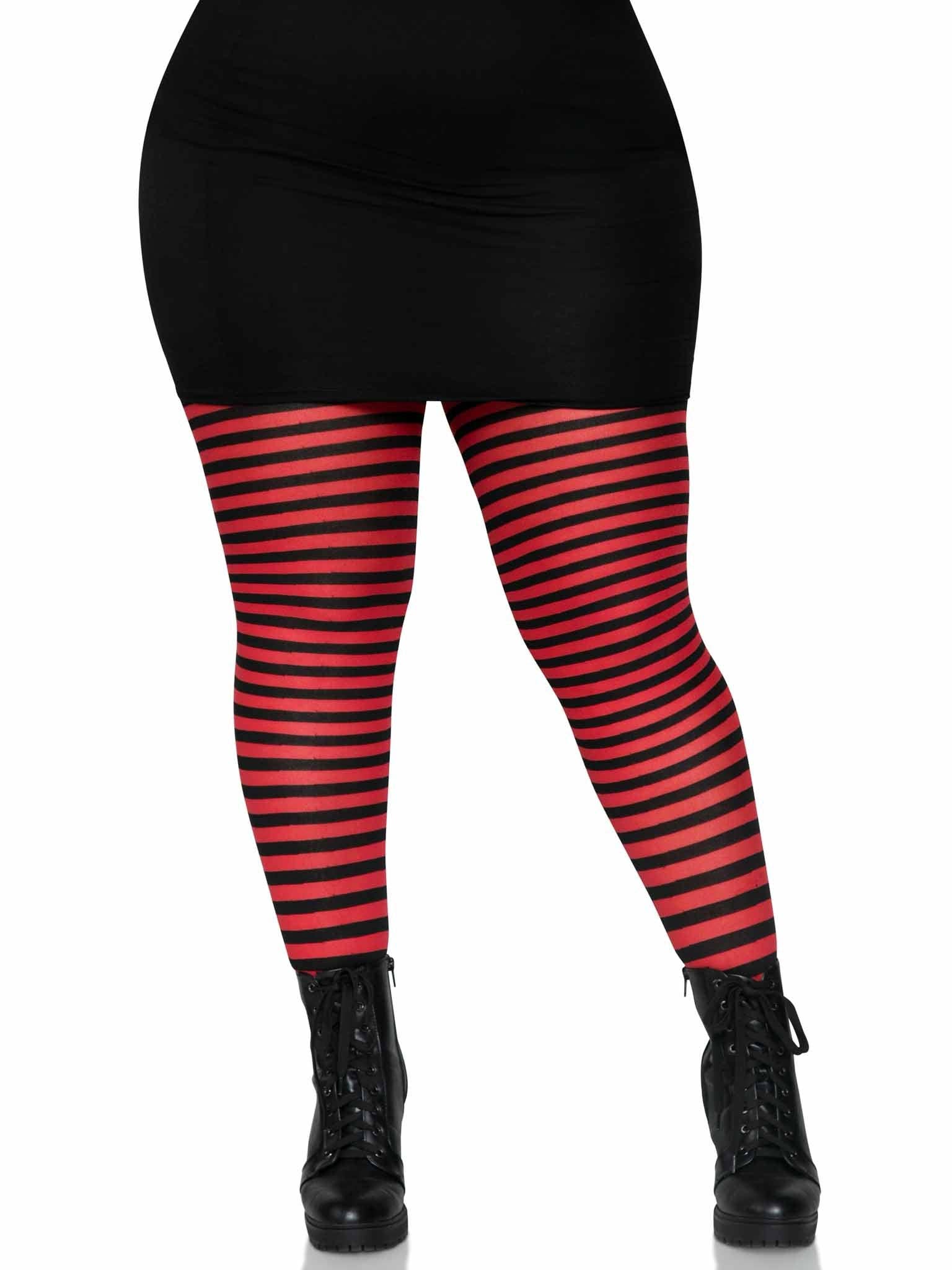 Leg Avenue - Plus Jada Striped Women's Tights: White/Red / 1X/2X
